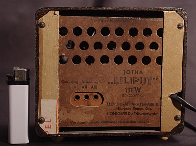 ![]() Jotha Liliput 111 W - eins meiner Frühwerke ...Es befindet sich seit ungefähr fünfundzwanzig Jahren in meinem Besitz. Das Gehäuse von diesem Radio hat der Vorbesitzer komplett mit hellgrüner Ölfarbe "veredelt". |