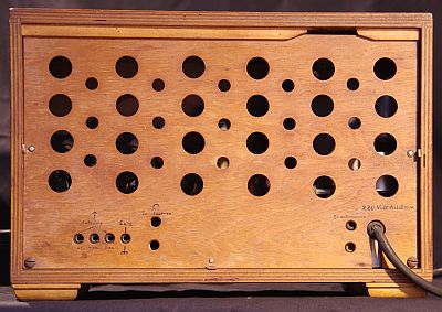 ![]() Hier die Rückseite des ersten Gerätes - vom Gehäuse her könnte man darauf schließen, dass zumindest ein Tischler mit am Werk war -