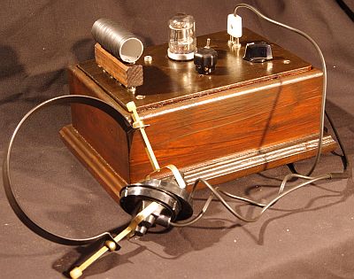 ![]() Ein Replik - ich hatte ein Frühstücksbrettchen übrig ...... und Lust, mal ein "ganz altes Radio" selbst zu bauen. Daher ist dann dieses urtümliche Radio entstanden. |